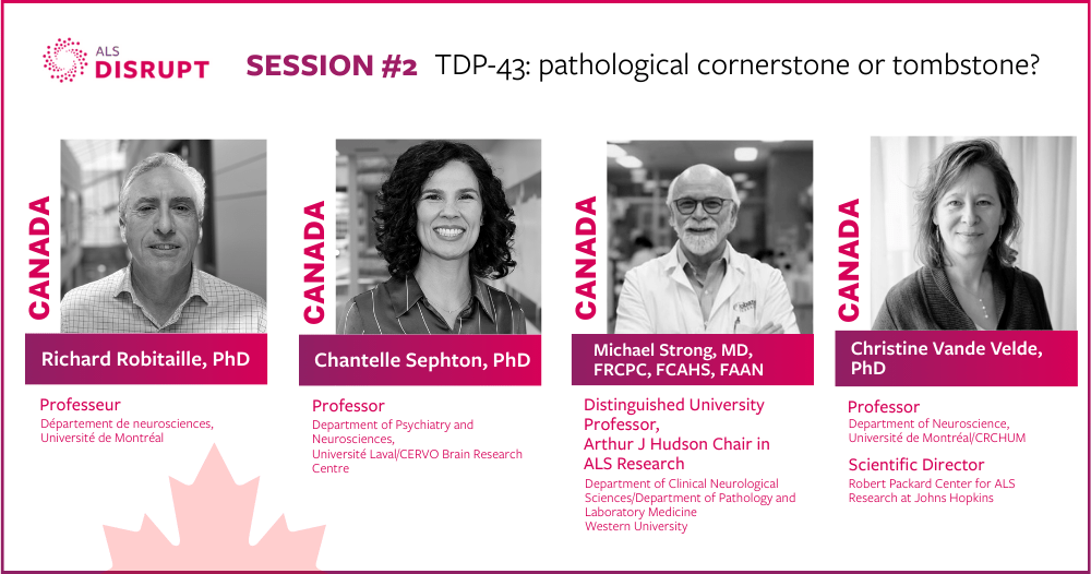 ALS Disrupt begins on April 25 with an exciting evening of scientific exchange and networking. The program features a plenary lecture, rapid-fire presentations from Canadians researchers, and an introduction to ALS Disrupt. The night includes a buffet dinner and reception.